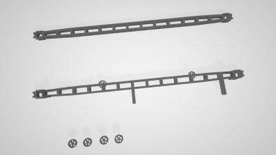 Het bouwpakketje bestaat uit de voet, een H-profiel van 3mm voor de mast, en de console. De losse mast met voet is ook te monteren op portaalconstructies. De mast heeft een dwarsbalkje zodat de bevestiging altijd op dezlefde hoogte zit. Het bouwpakketje past zonder lijm stevig in elkaar.