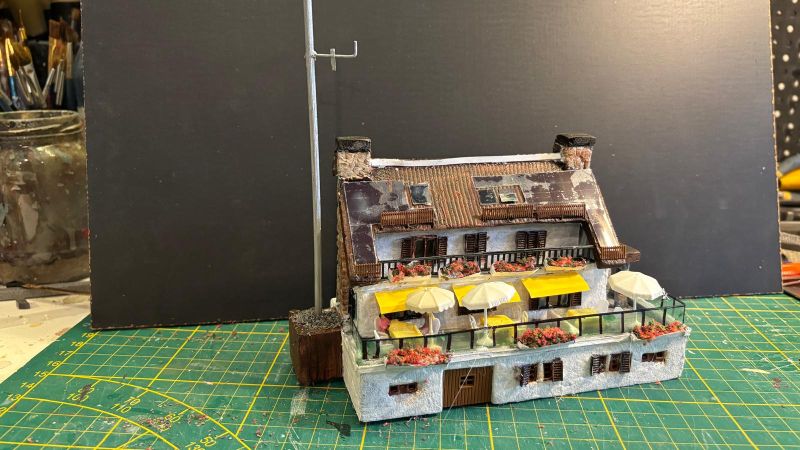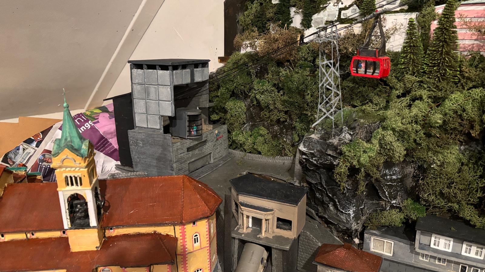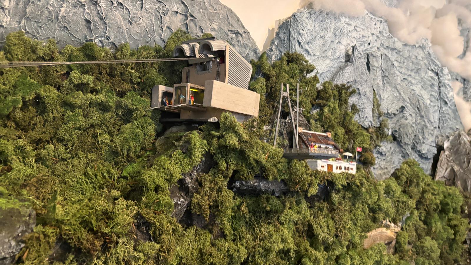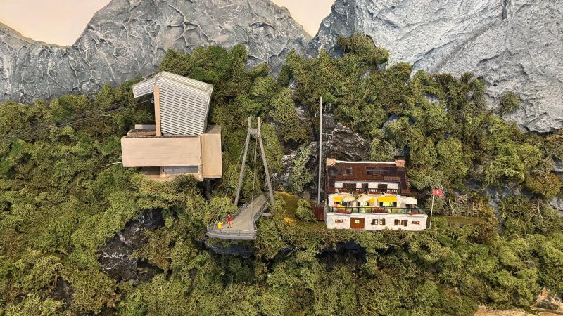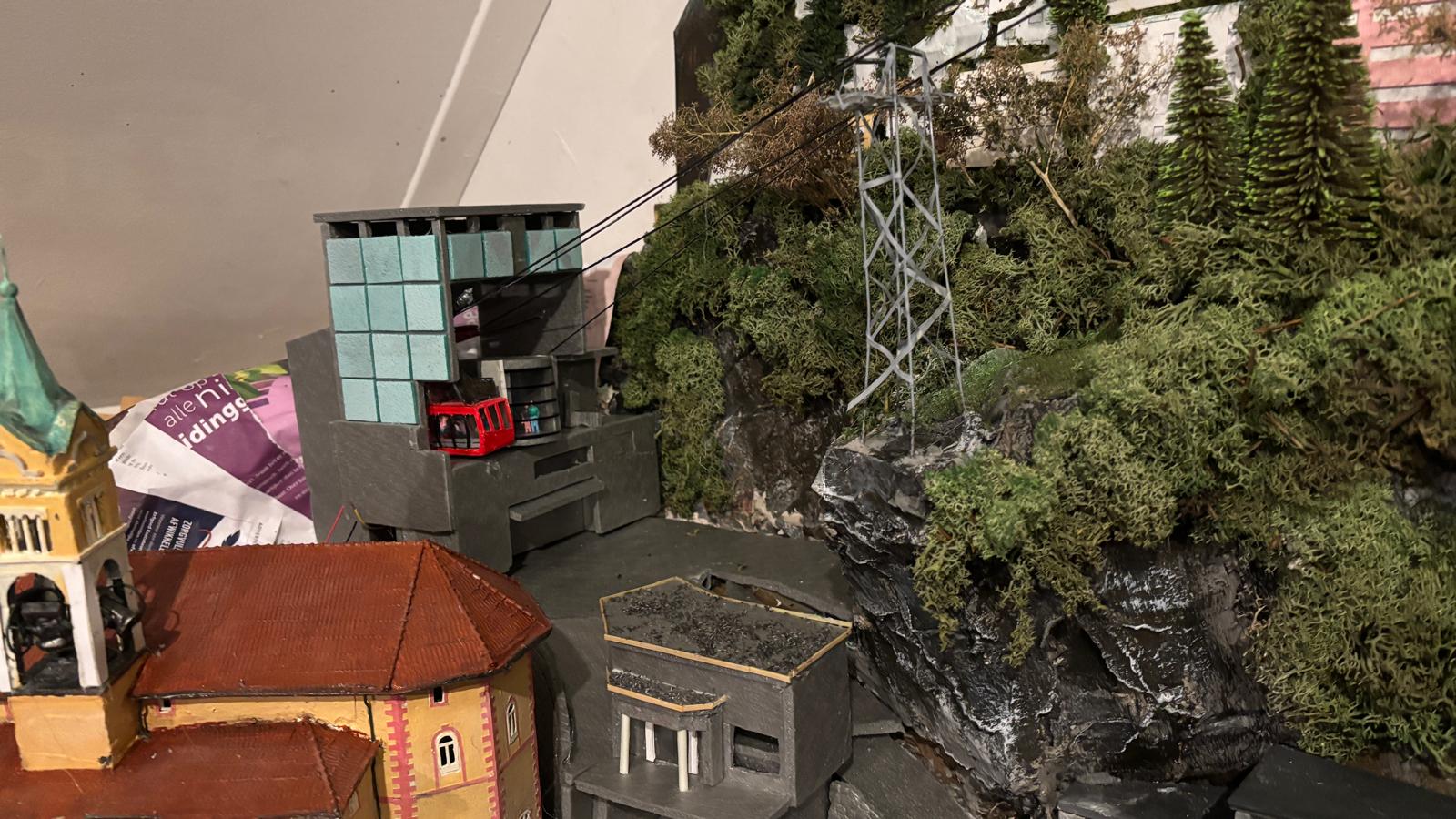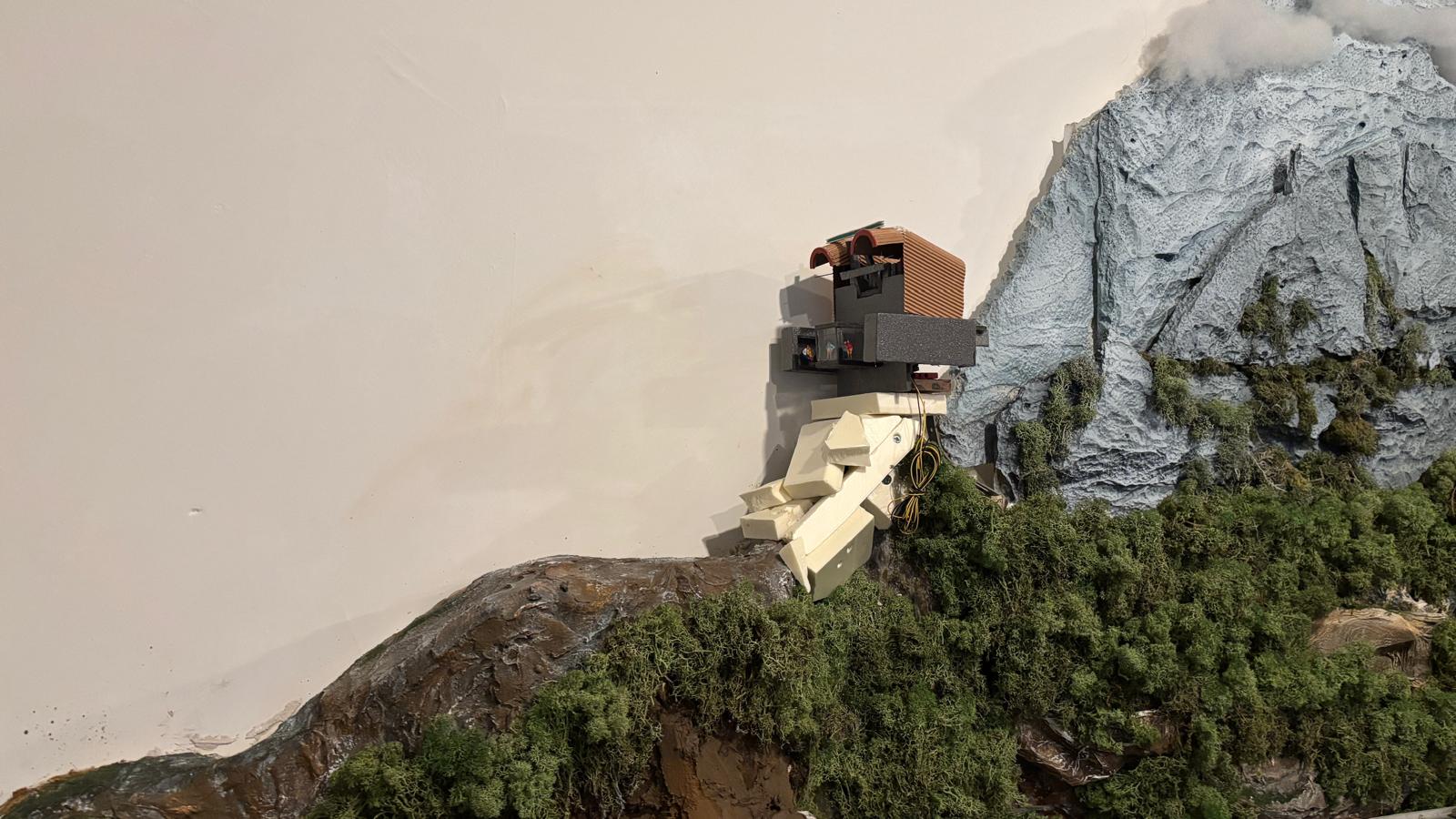 En bij het bergstation zit een restaurant en een uitzichtsplatform. Daar is totaal geen ruimte voor maar ik heb het toch tegen de bijna vlakke wand aangebouwd.