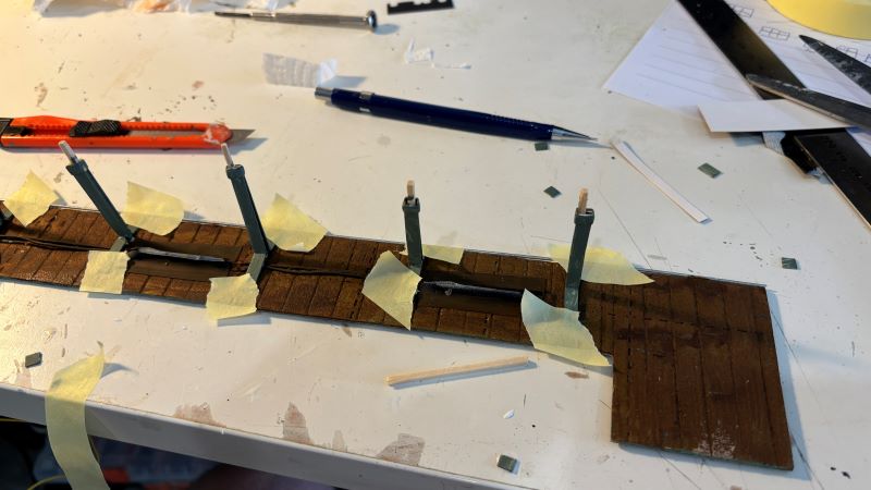 De portalen voor de bovenleiding worden zelfbouw. Dat is nog wel een uitdaging. Het eerste prototype is wel geslaagd. Meer hierover in een ander topic. Negen stuks nodig dus genoeg te oefenen.
