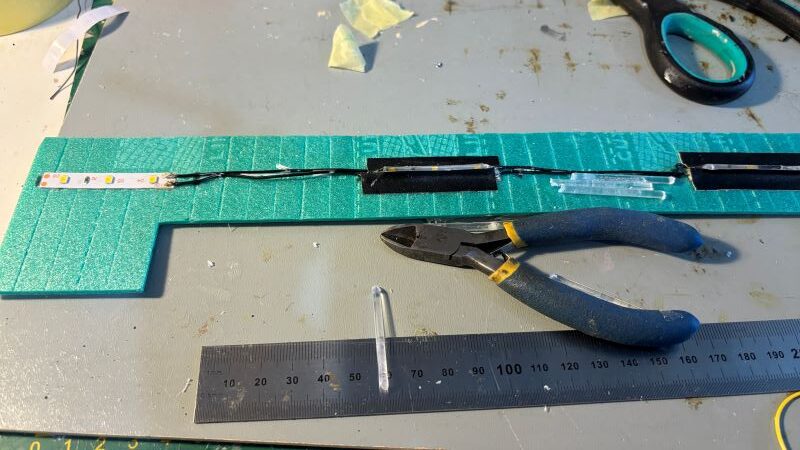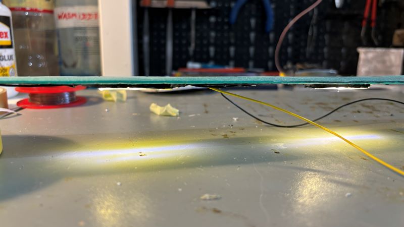 De verlichting bestaat uit TL-balken. Die zijn gemaakt van transparante buisjes van een gietvorm van een bouwpakket. Het buisje ligt op een LED-strip.