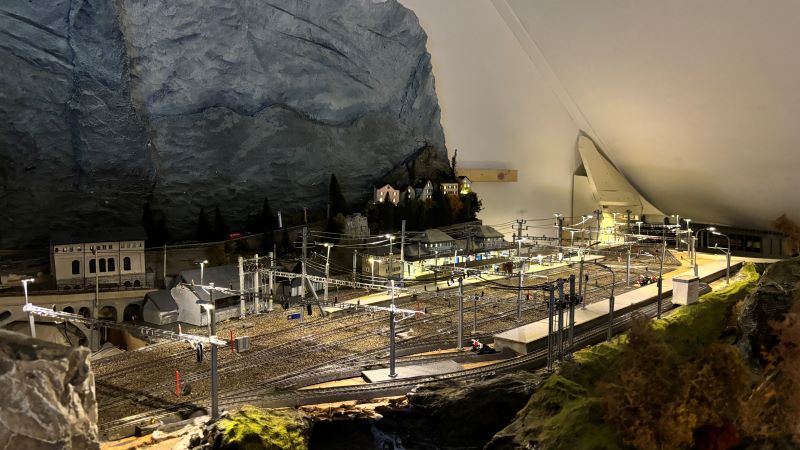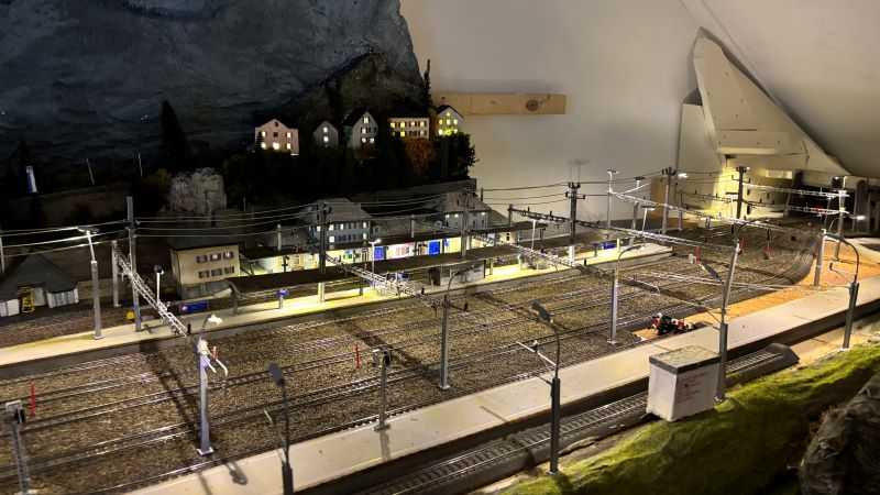 Het station heeft een groot aantal sporen naast elkaar en de bovenleiding komt daar overheen met portaalmasten over de hele breedte. De portaalmasten bepalen nogal het aangezicht dus die moeten worden uitgemeten voor de juiste plaats. Een onderlinge afstand van 25 cm komt het beste uit.