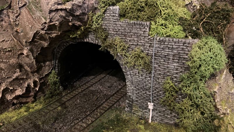 De Leggistein Kehrtunnel aan de Noordzijde is gemaakt van XPS-plaat waarin een steenstructuur is gekrast. De tunnelbuis is van zwart karton. De rotsen er omheen van papier maché met gips.